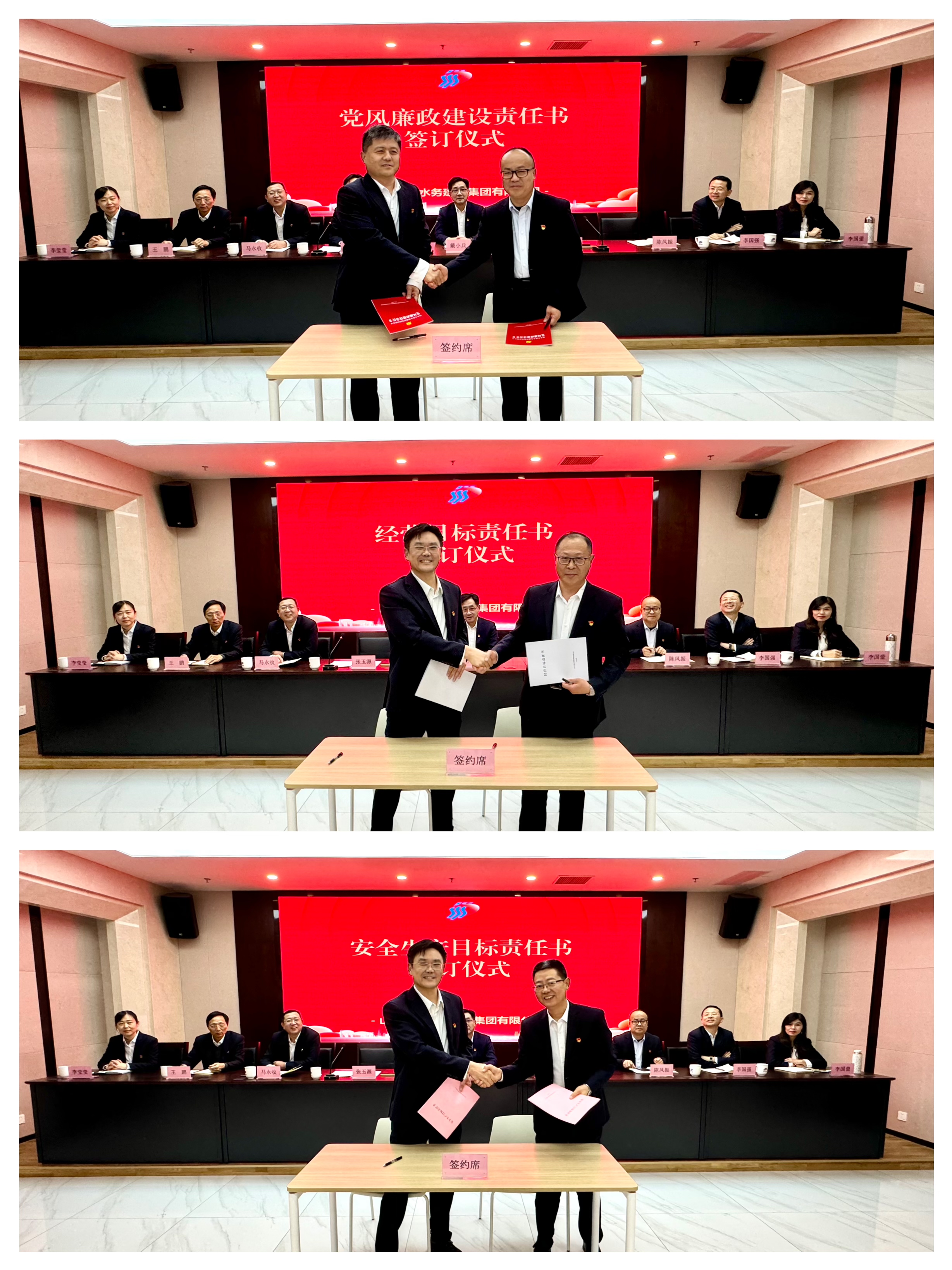 會上,簽訂黨風廉政建設責任書、安全生產目標責任書、經營目標責任書。
