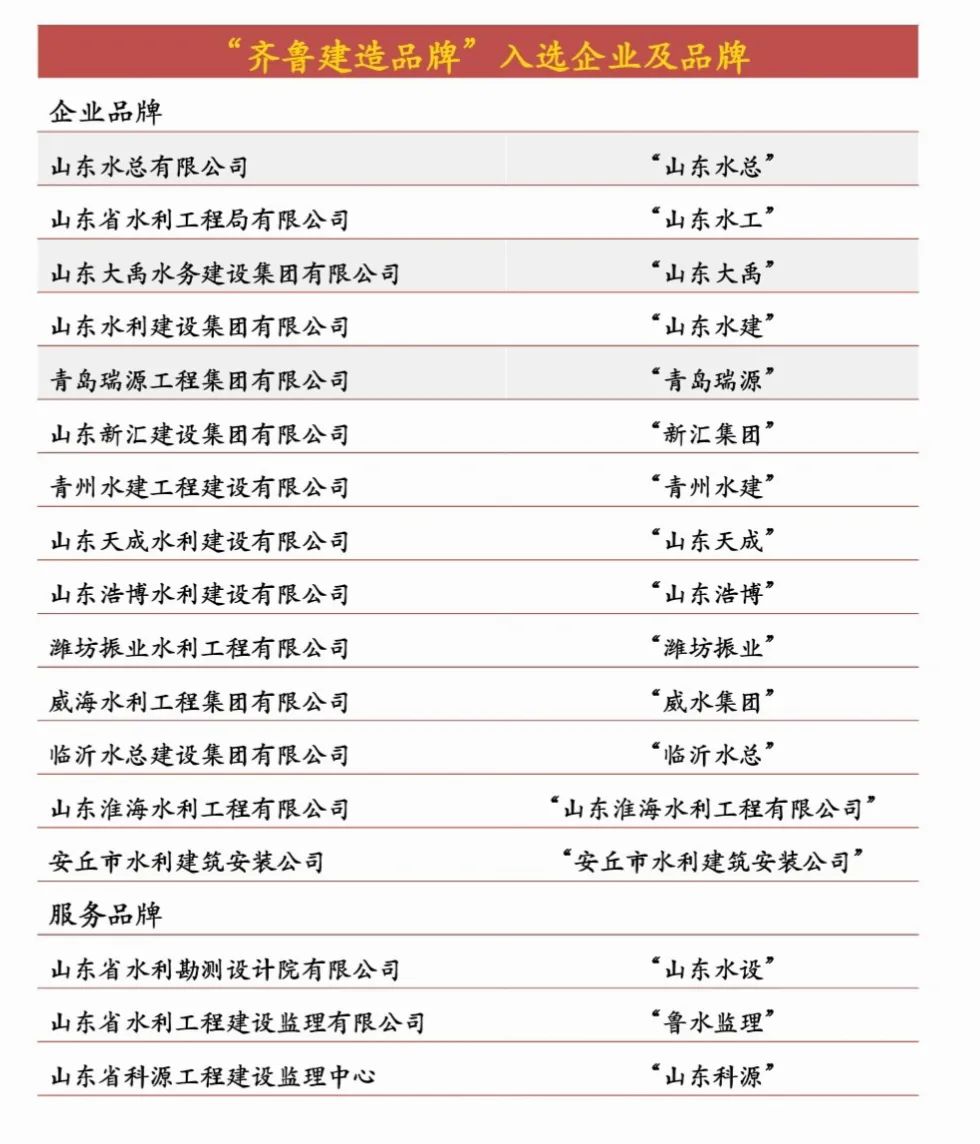 近日,山東省住房和城鄉建設廳正式發布《關于公布山東省建筑業2025年第一批“齊魯建造”品牌的通知》(魯建辦字〔2025〕4號)。經嚴格評審,我省水利行業共有17家優秀企業光榮入選“齊魯建造”品牌榜單。