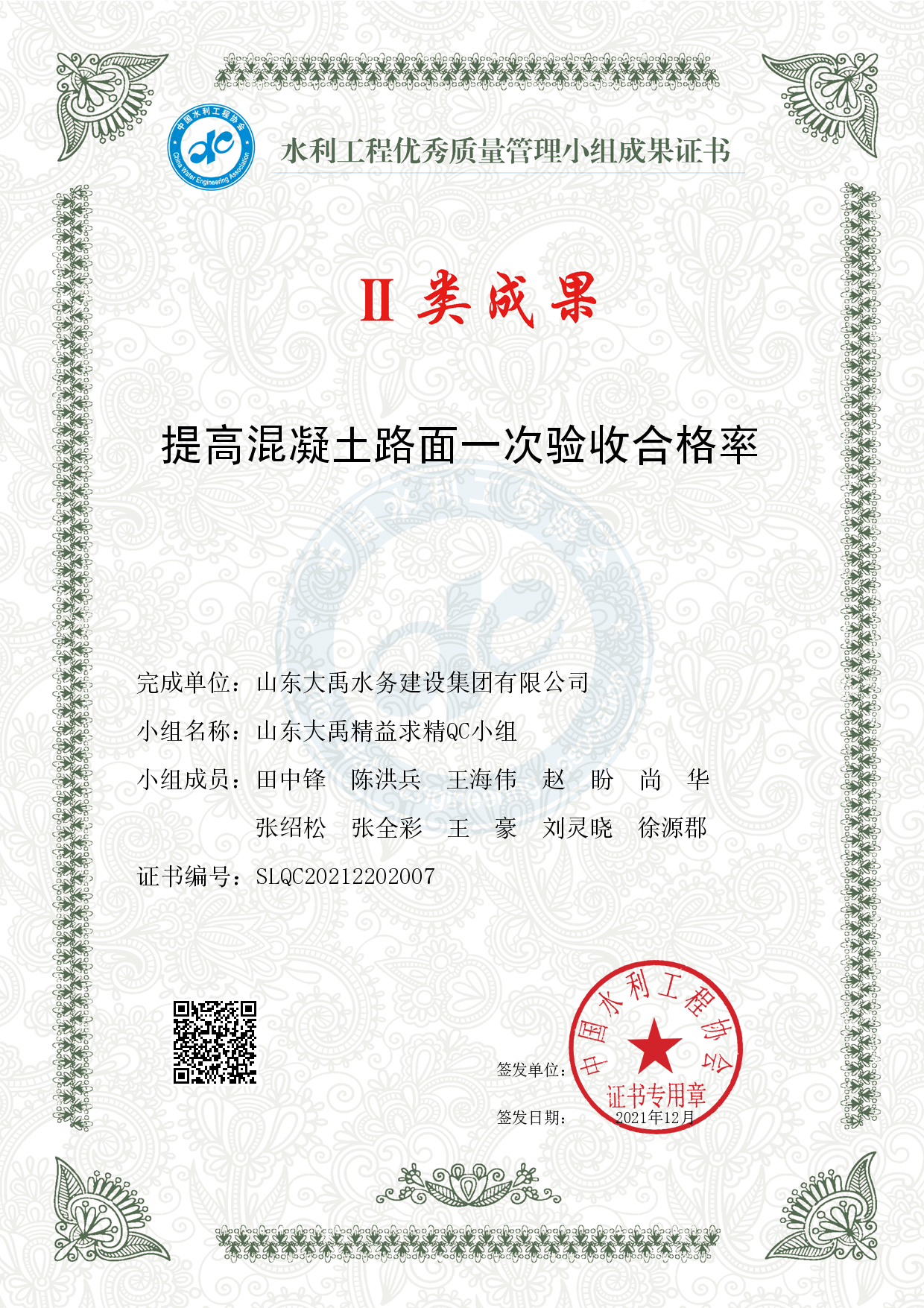 2021年QC小組II類(lèi)成果證書(shū)