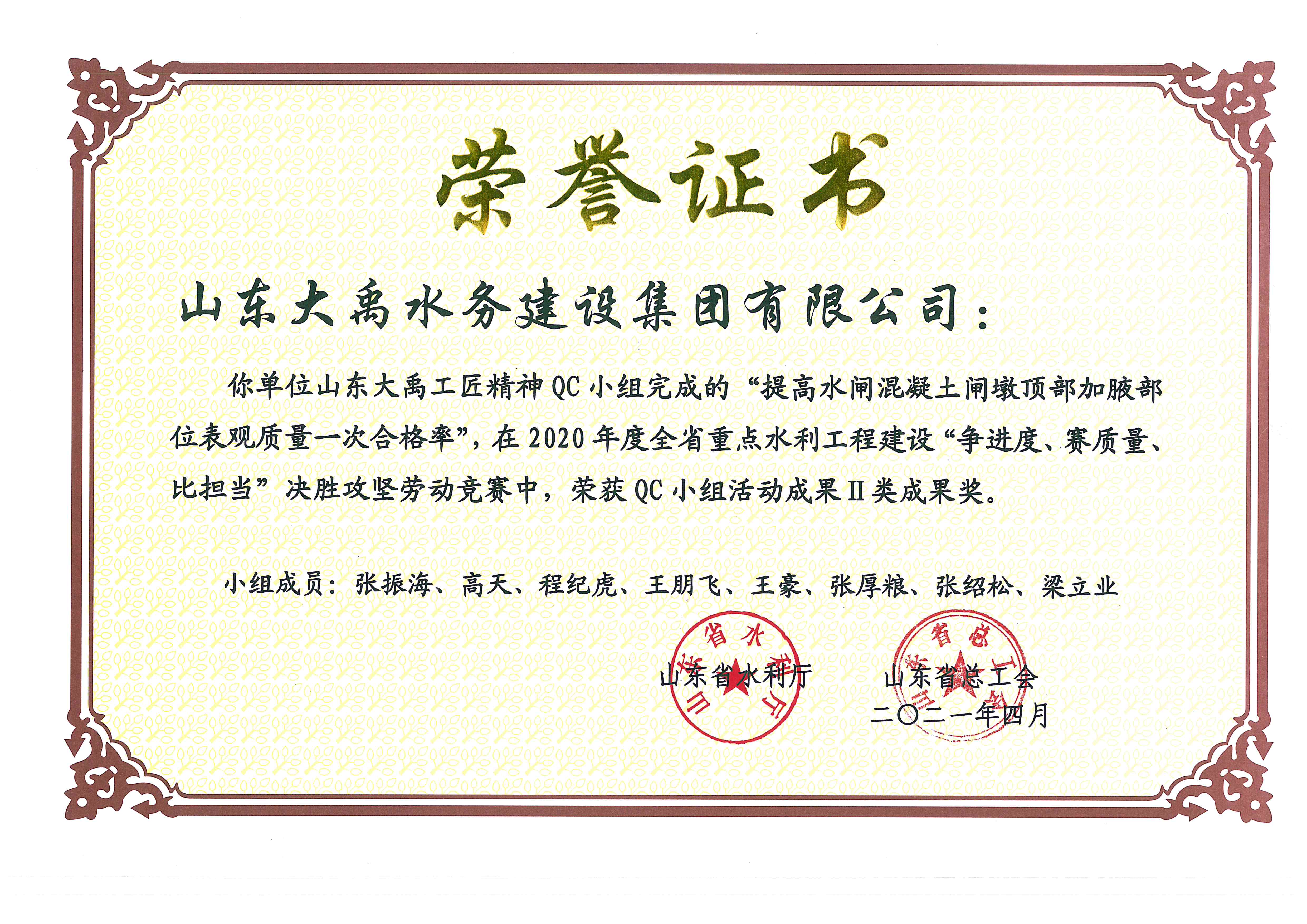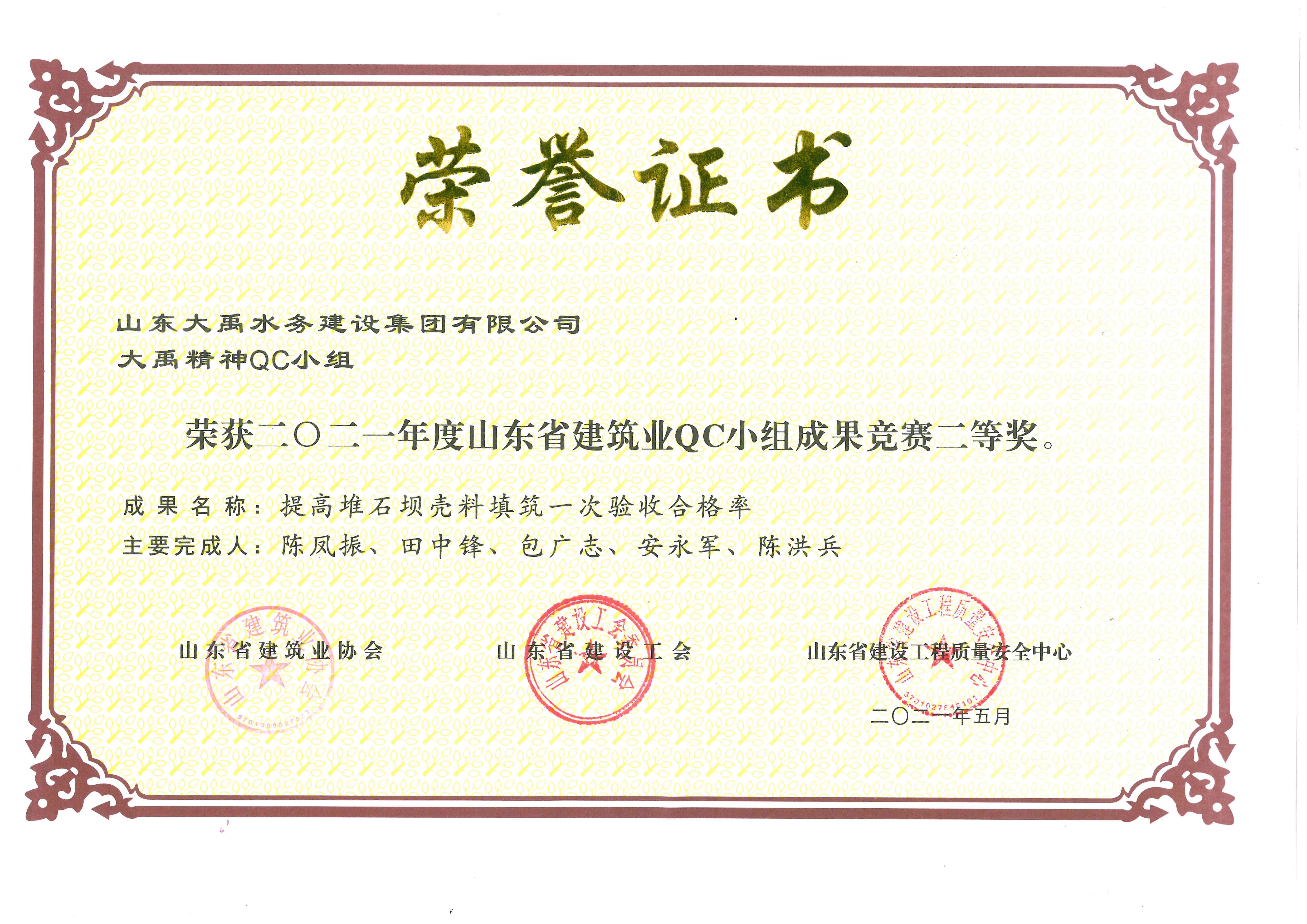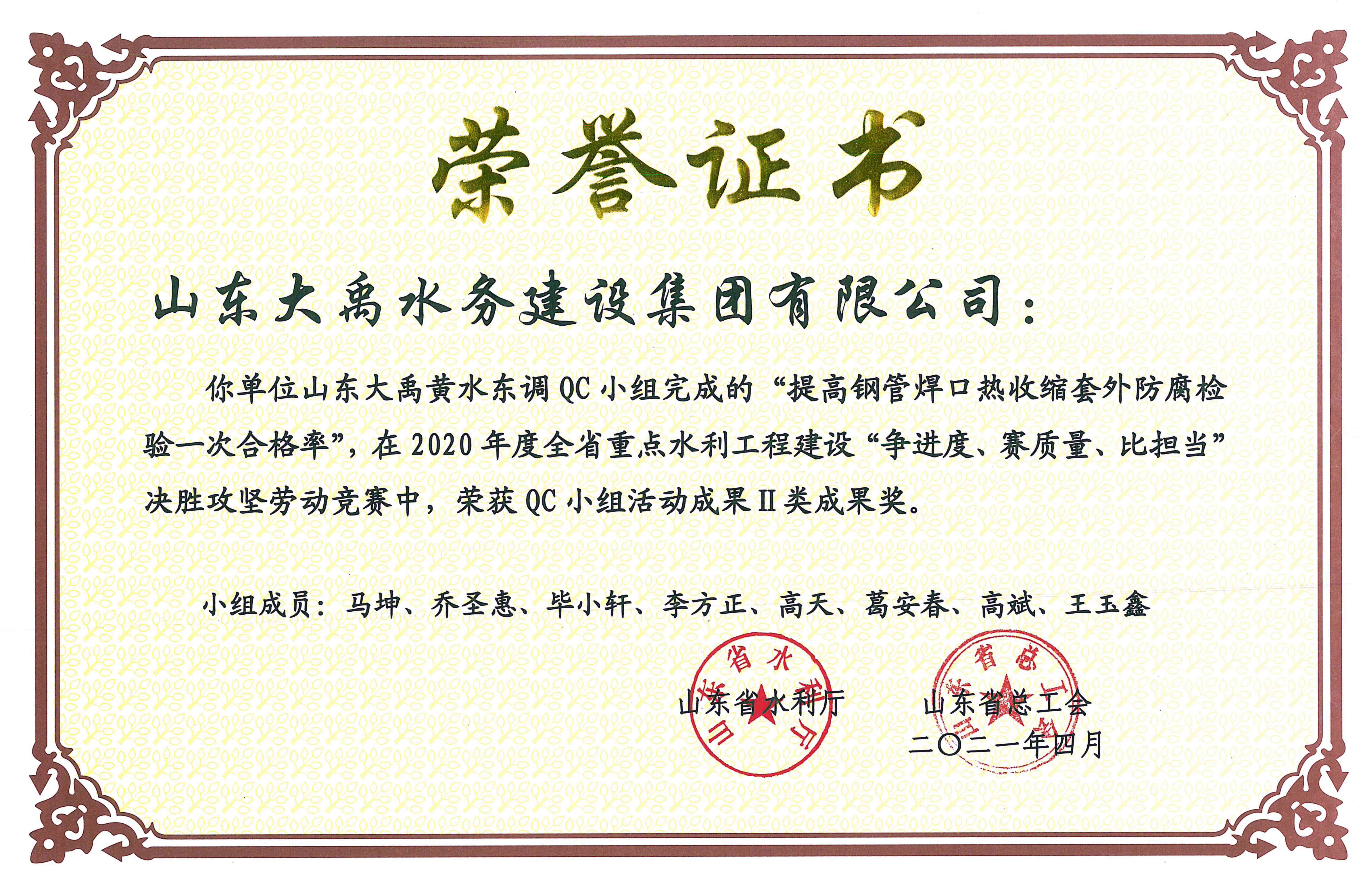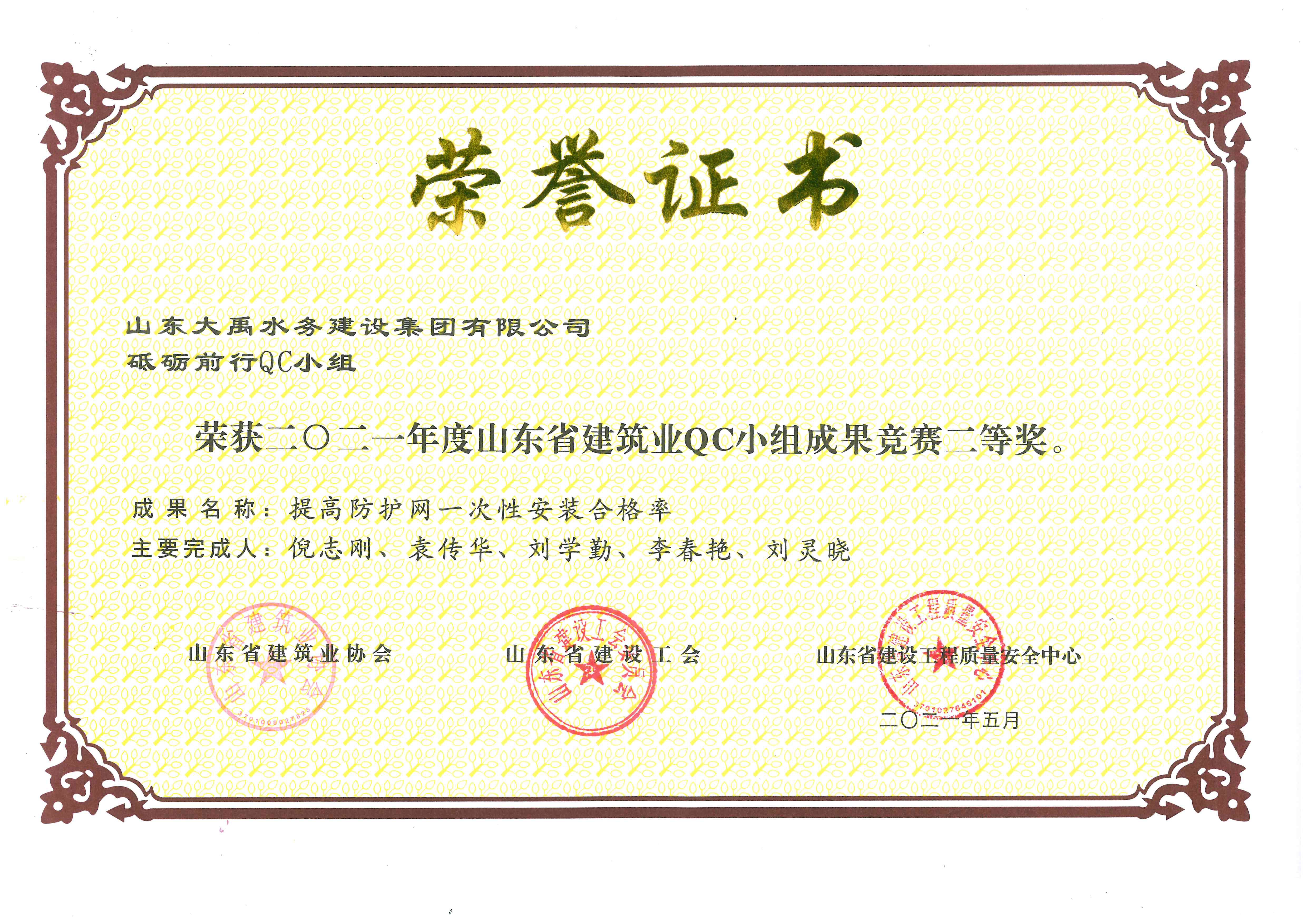 2021年QC小組二等獎(jiǎng)證書(shū)