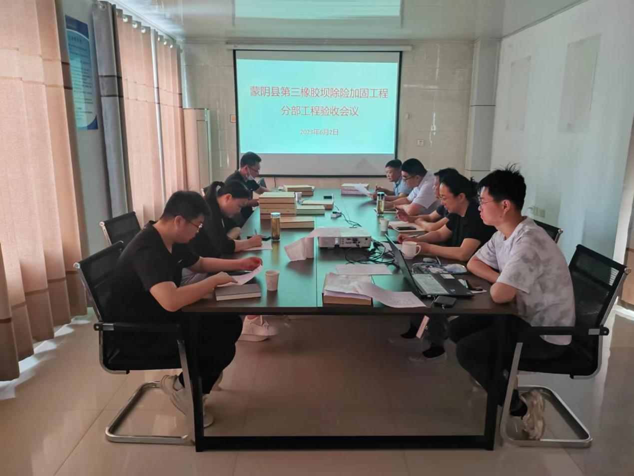 6月2日,蒙陰縣第三橡膠壩除險加固工程順利通過分部工程驗收。蒙陰縣水利工程保障中心主持驗收,山東正禹工程監(jiān)理有限公司、山東新匯建設(shè)集團(tuán)有限公司、山東龍躍興設(shè)計集團(tuán)有限公司、臨沂正平質(zhì)量檢測有限公司、山東大禹水務(wù)建設(shè)集團(tuán)有限公司等單位的專家和代表組成驗收工作組,蒙陰縣水利局水利基本建設(shè)工程質(zhì)量監(jiān)督站派員列席會議。