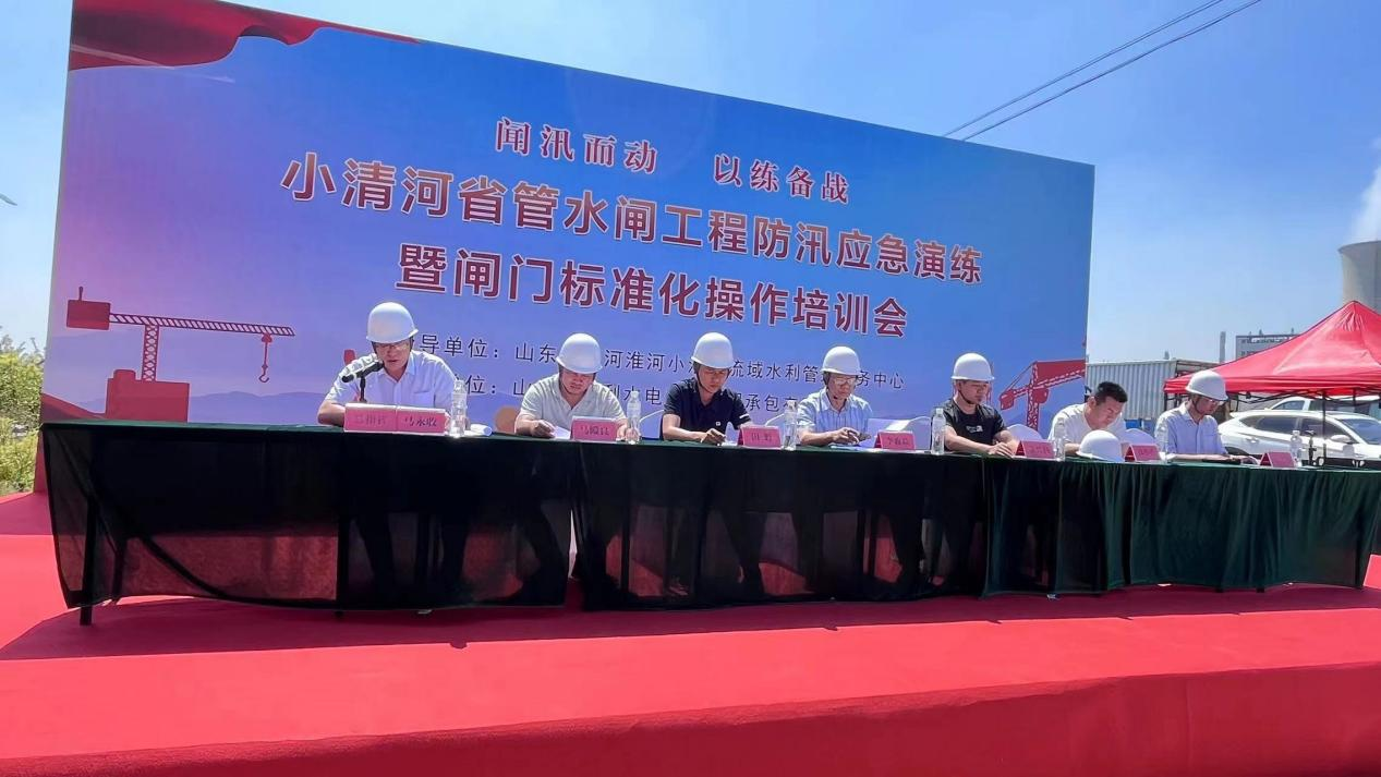 為深入開展全國第22個“安全生產月”活動,緊緊圍繞“人人講安全、個個會應急”的主題,充分發揮應急演練在完善應急準備工作、提升應急救援能力中的重要作用,提高防范和應對突發事件的能力,最大程度地預防和減少事故及其造成的損害,6月30日,承包公司在小清河金家堰閘舉辦小清河省管水閘工程防汛應急演練暨閘門標準化操作培訓會。山東省海河淮河小清河流域水利管理服務中心小清河調度運行部部長李森焱,集團公司副總經理、承包公司執行董事兼總經理馬永收出席活動。