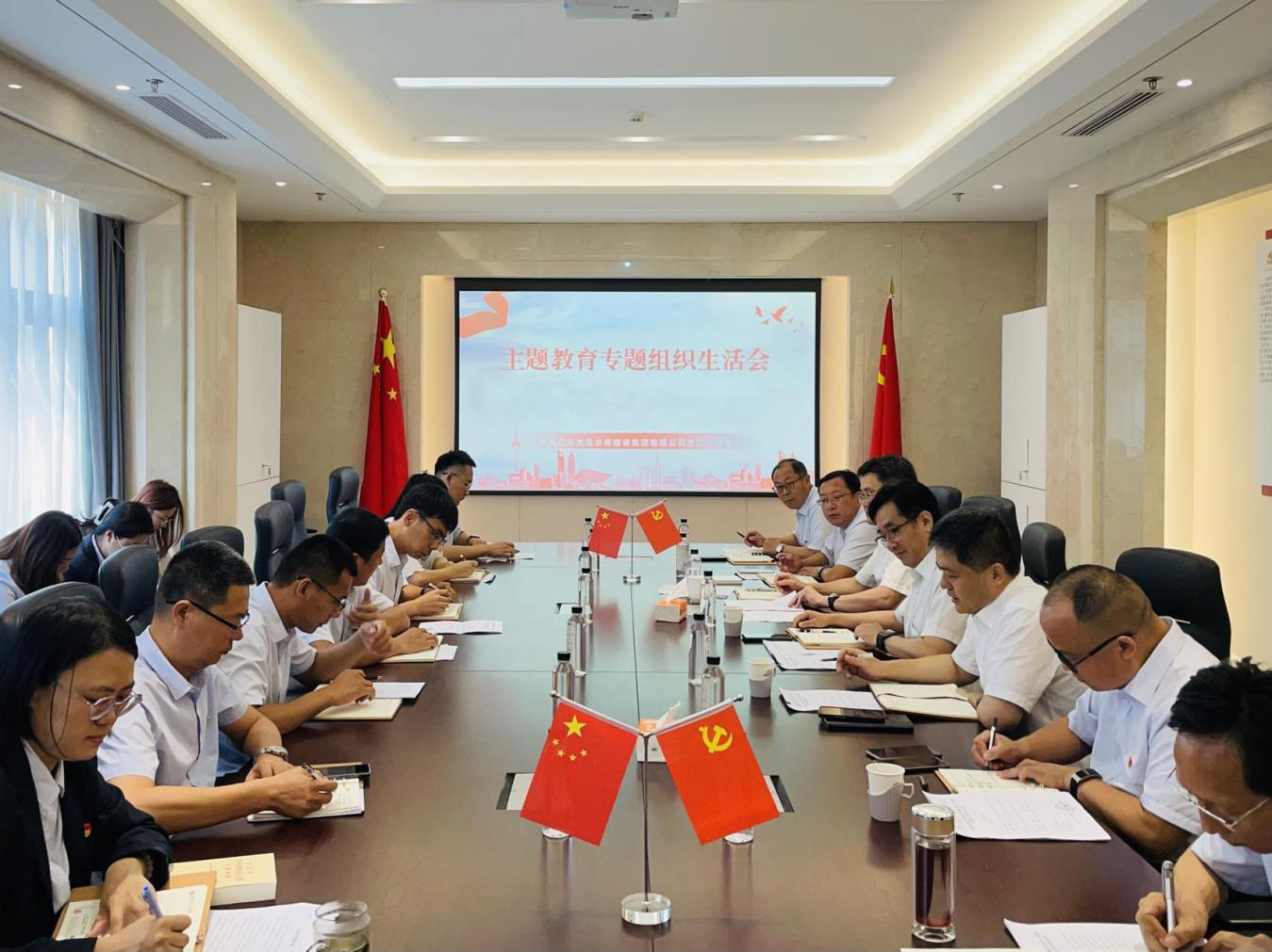 8月31日,大禹集團黨支部召開主題教育專題組織生活會,山東水設黨委委員、副總經理戴小兵同志以普通黨員身份參加,大禹集團黨支部書記、董事長張海濤主持會議。