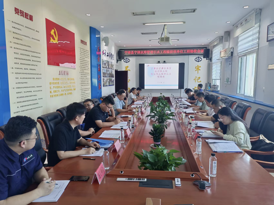 9月4日,寧津縣寧津水庫管道引水工程建管處組織召開寧津縣寧津水庫管道引水工程橡膠壩單位工程驗收會議。寧津縣水利事業發展中心、濟南市水利建筑勘測設計研究院有限公司、水發規劃設計有限公司、山東省淮海建設管理集團有限公司、山東省水利工程試驗中心有限公司等單位組成橡膠壩單位工程驗收工作組。寧津縣寧津水庫管道引水工程質量與安全監督項目站、德州市水利局河道河道管理服務中心派員列席會議,并對驗收進行監督。