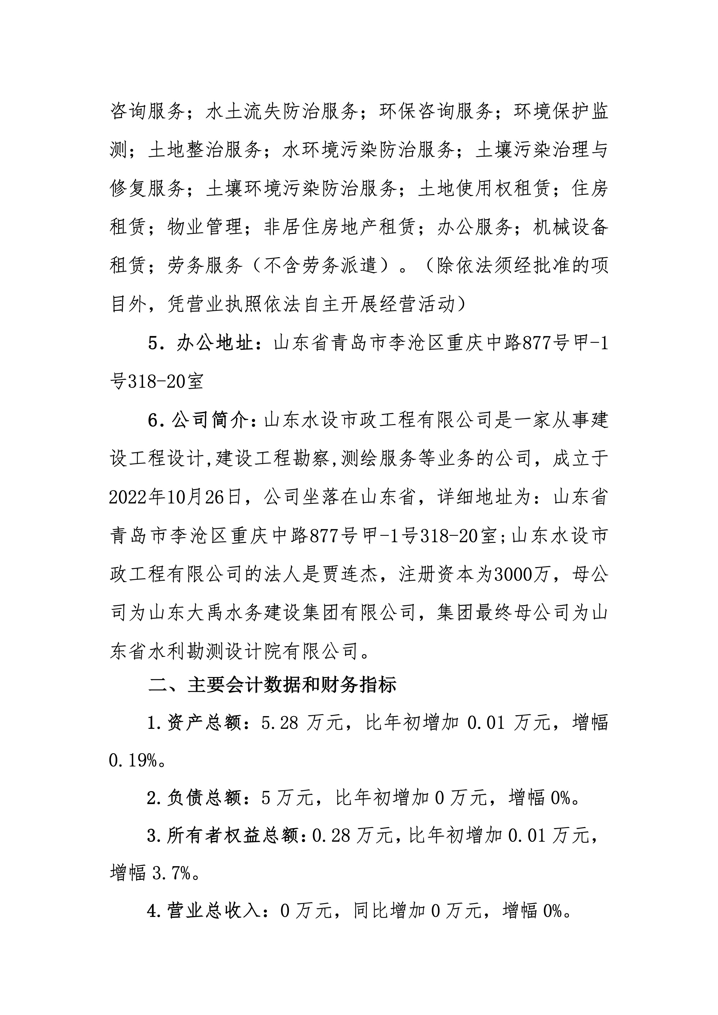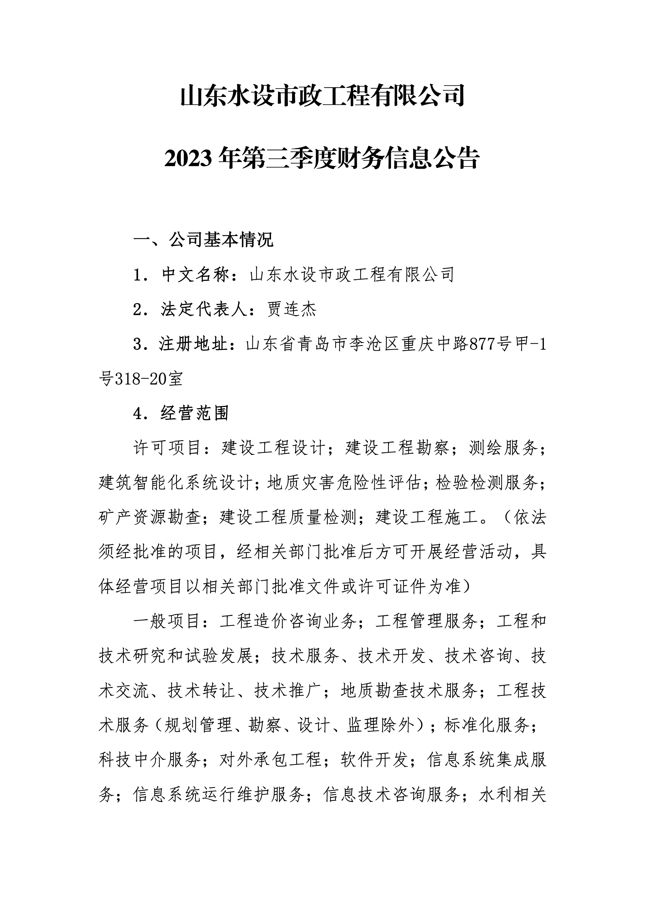 山東水設(shè)市政工程有限公司2023年第三季度財(cái)務(wù)信息公告