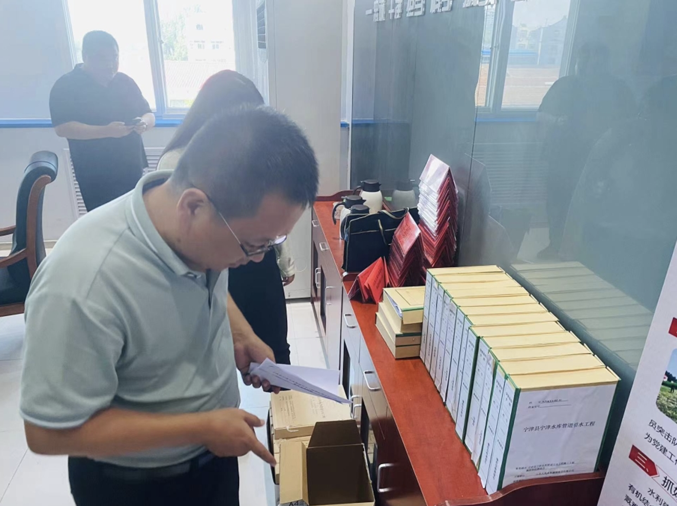 本次驗(yàn)收范圍為寧津縣寧津水庫管道引水施工2標(biāo)合同工程。驗(yàn)收工作組查看了工程現(xiàn)場、工程外觀質(zhì)量,聽取了建管、代建、設(shè)計、監(jiān)理、檢測、施工等單位的工作匯報,查閱了單位工程相關(guān)文件及有關(guān)檔案資料,討論并通過了合同工程鑒定書。