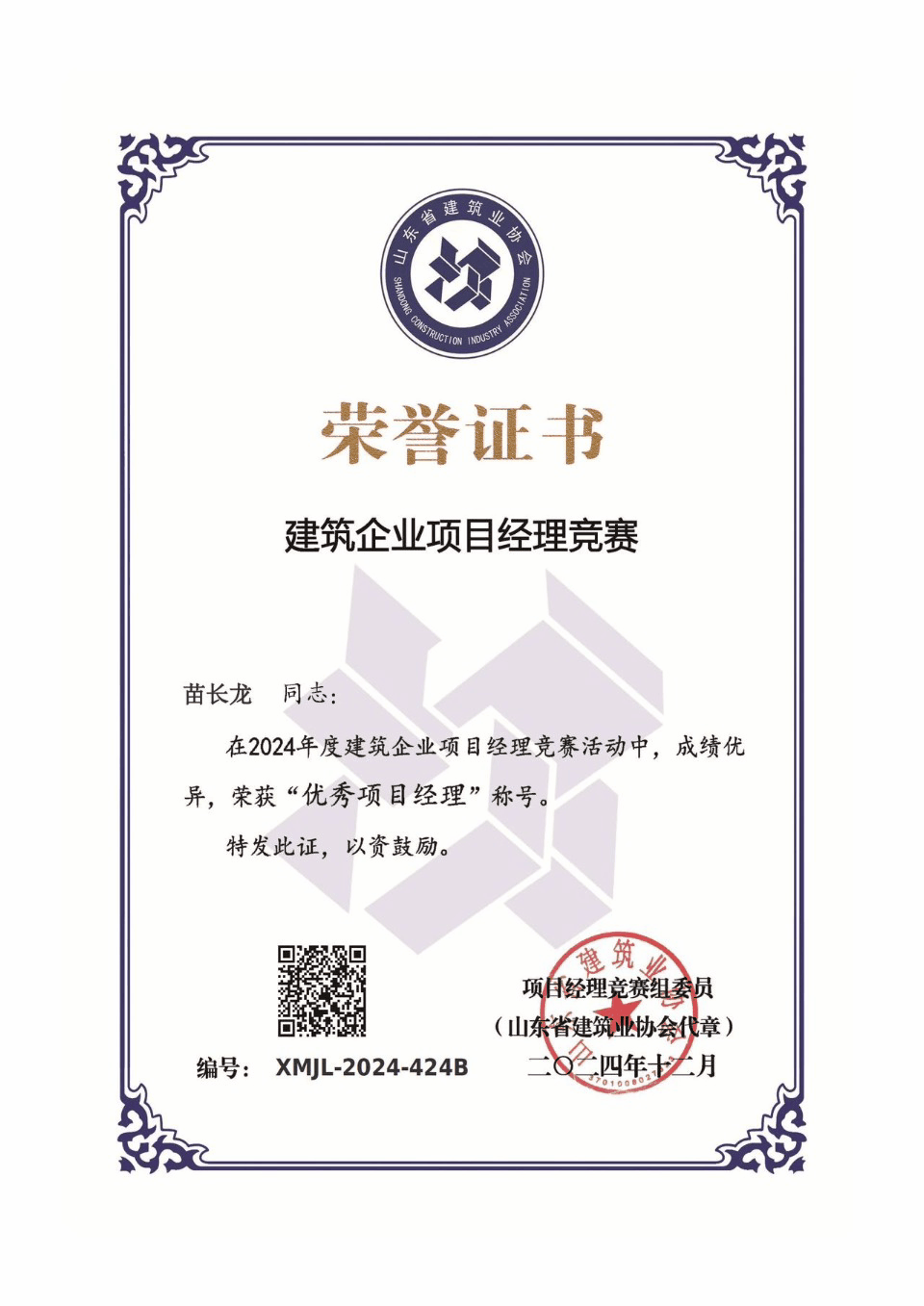 近日,山東省建設(shè)工會(huì)與山東省建筑業(yè)協(xié)會(huì)聯(lián)合發(fā)布《關(guān)于公布2024年度建筑企業(yè)項(xiàng)目經(jīng)理競賽結(jié)果的通知》,山東大禹水務(wù)建設(shè)集團(tuán)有限公司苗長龍、畢小軒、程紀(jì)虎、陳衛(wèi)東四名同志憑借卓越的專業(yè)素養(yǎng)與出色的項(xiàng)目管理能力,一路過關(guān)斬將,歷經(jīng)內(nèi)部嚴(yán)格評審、層層推薦、決賽角逐、綜合評議及公示等系列規(guī)范流程,脫穎而出,被授予“2024年度山東省建筑業(yè)企業(yè)優(yōu)秀項(xiàng)目經(jīng)理”稱號。