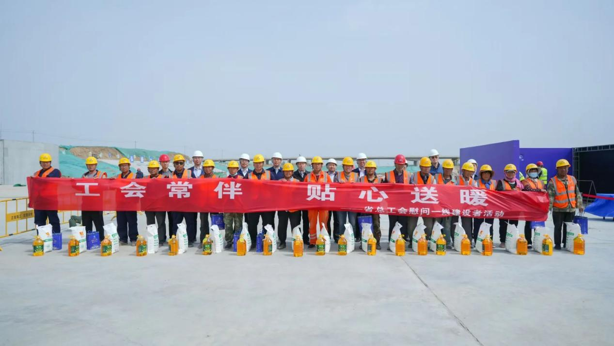 勞動競賽結束之際,省、市、縣工會和水務部門共同開展“工會常伴 貼心送暖”活動,深入集團公司鋼壩閘項目部,與一線工人親切交流,詳細詢問工作和生活情況,并送上面粉、食用油等慰問品。