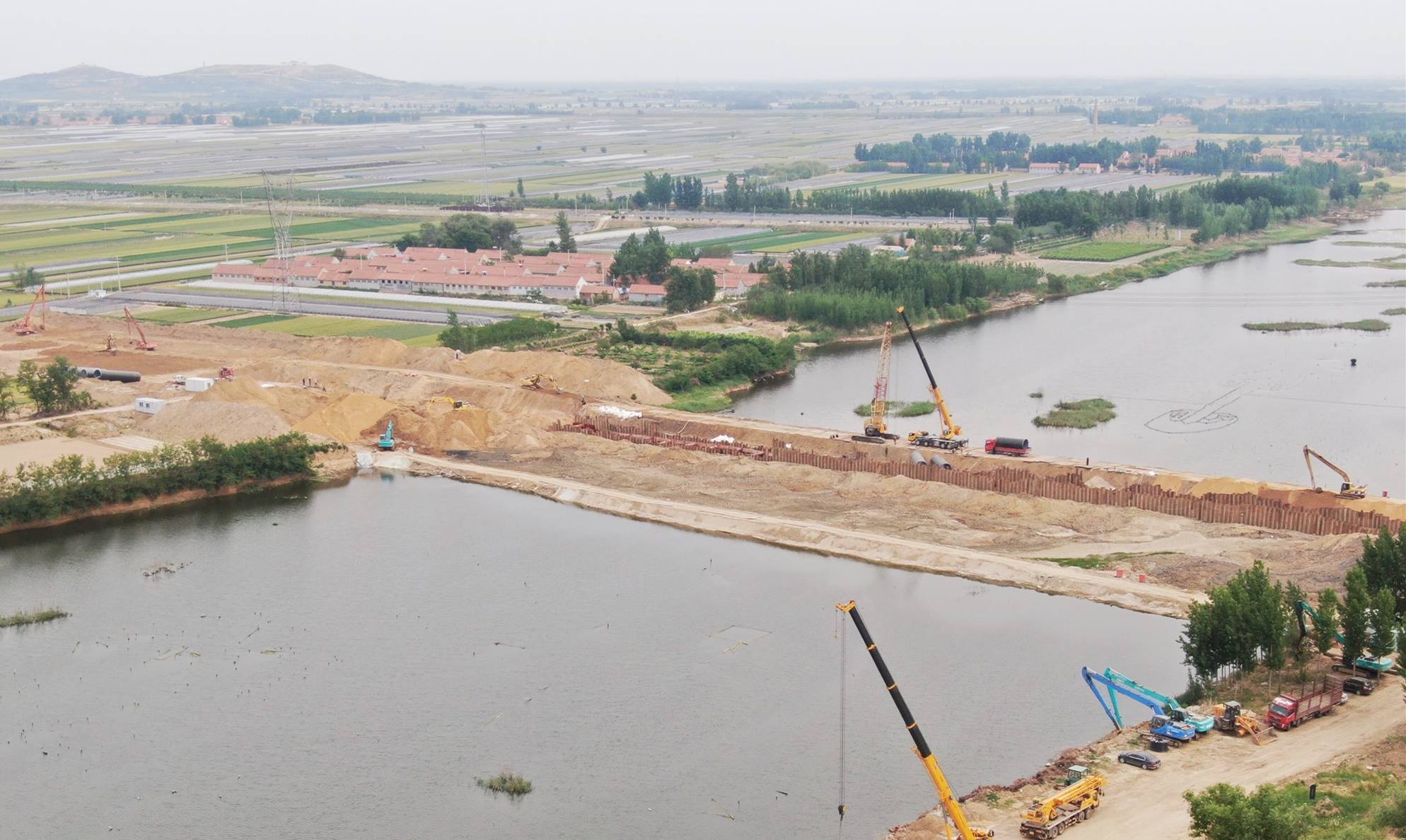 膠萊河工程原計劃進(jìn)行大開挖。如按原方案開挖,淤泥層厚度過厚,勢必引起滑坡,造成對現(xiàn)有圍堰的破壞。項目部不等不靠,與業(yè)主、代建、設(shè)計及監(jiān)理單位共同研究,重新編制膠萊河施工方案,并組織專家論證。新方案確定后,項目部迅速組織機(jī)械設(shè)備進(jìn)場,立即組織實施,采用鋼板樁支護(hù),長臂挖掘機(jī)挖土。打樁、開挖、支護(hù)、基底驗收、管道安裝、回填、混凝土包封等工序流水作業(yè),壓茬進(jìn)行。項目部全體員工加班加點(diǎn),蹲守施工現(xiàn)場,科學(xué)合理調(diào)度施工人員,白天增加人員數(shù)量,全面展開工作,黑夜架設(shè)大功率射燈,全方位保障夜間施工。在集團(tuán)的大力支持與參建各方的共同努力下,施工方案得到進(jìn)一步優(yōu)化,施工進(jìn)度得到合理加快。