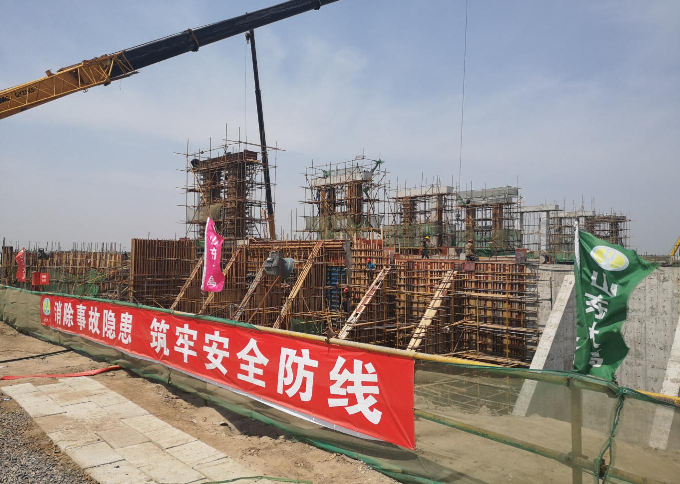 小清河防洪綜合治理工程作為山東省重點水利工程,對提高小清河防洪減災能力、保證沿線人民生命財產安全具有重要意義。集團公司承建的小清河防洪綜合治理(干流、分洪道濰坊段)施工五標段自2020年3月份開工,一直受地理環境、輸油管線、新冠疫情等因素的影響,導致施工難度增大。但面對省政府下達的6月30日完成閘門啟閉機安裝且具備節制洪水能力的節點目標,集團公司秉承“弘揚大禹精神,鑄就精品工程”的理念,講政治顧大局,調集優秀的業務骨干組建項目管理團隊,并加大對項目人力、物力、財力的支持。整個項目團隊不負眾望,雷厲風行,面對困難迎難而上,滿負荷、高效率地利用四十天時間完成了復雜的基礎處理工程,并于6月7日順利完成了閘室段主體工程砼澆筑任務,打了一個漂亮的攻堅戰,展示了集團公司敢于擔當、勇于拼搏、能打硬仗的鐵軍精神。