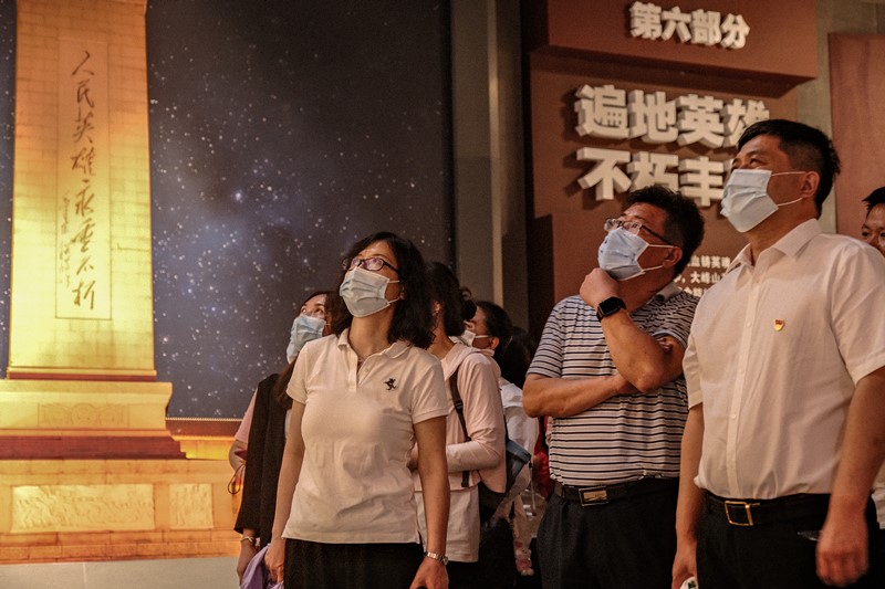 參觀后,大家來到初心廣場,面對鮮紅的黨旗,重溫入黨誓言,重新感受入黨初心。
