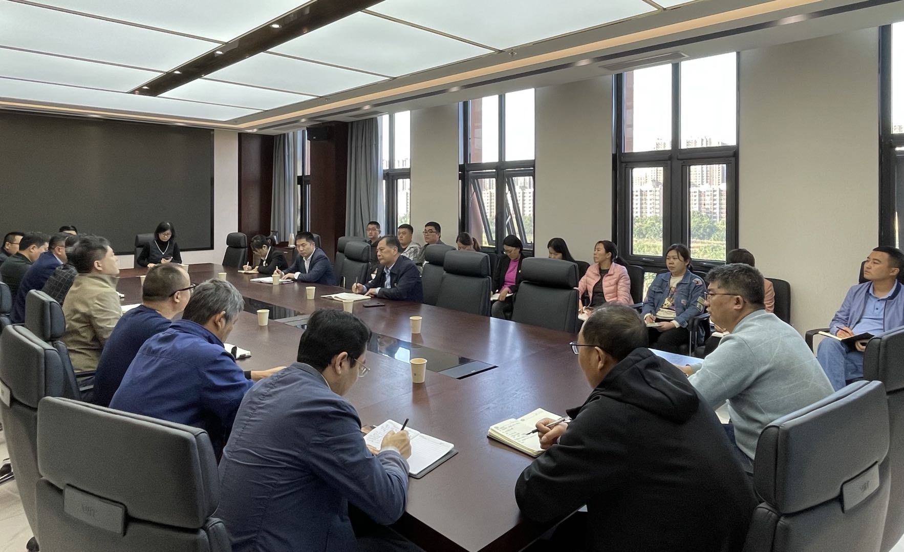 2021年10月11日,院黨委委員、紀委書記馬慶軍帶領(lǐng)紀檢工作人員到山東大禹水務(wù)建設(shè)集團有限公司調(diào)研指導(dǎo)工作,公司中層副職以上干部及全體黨員參與座談。