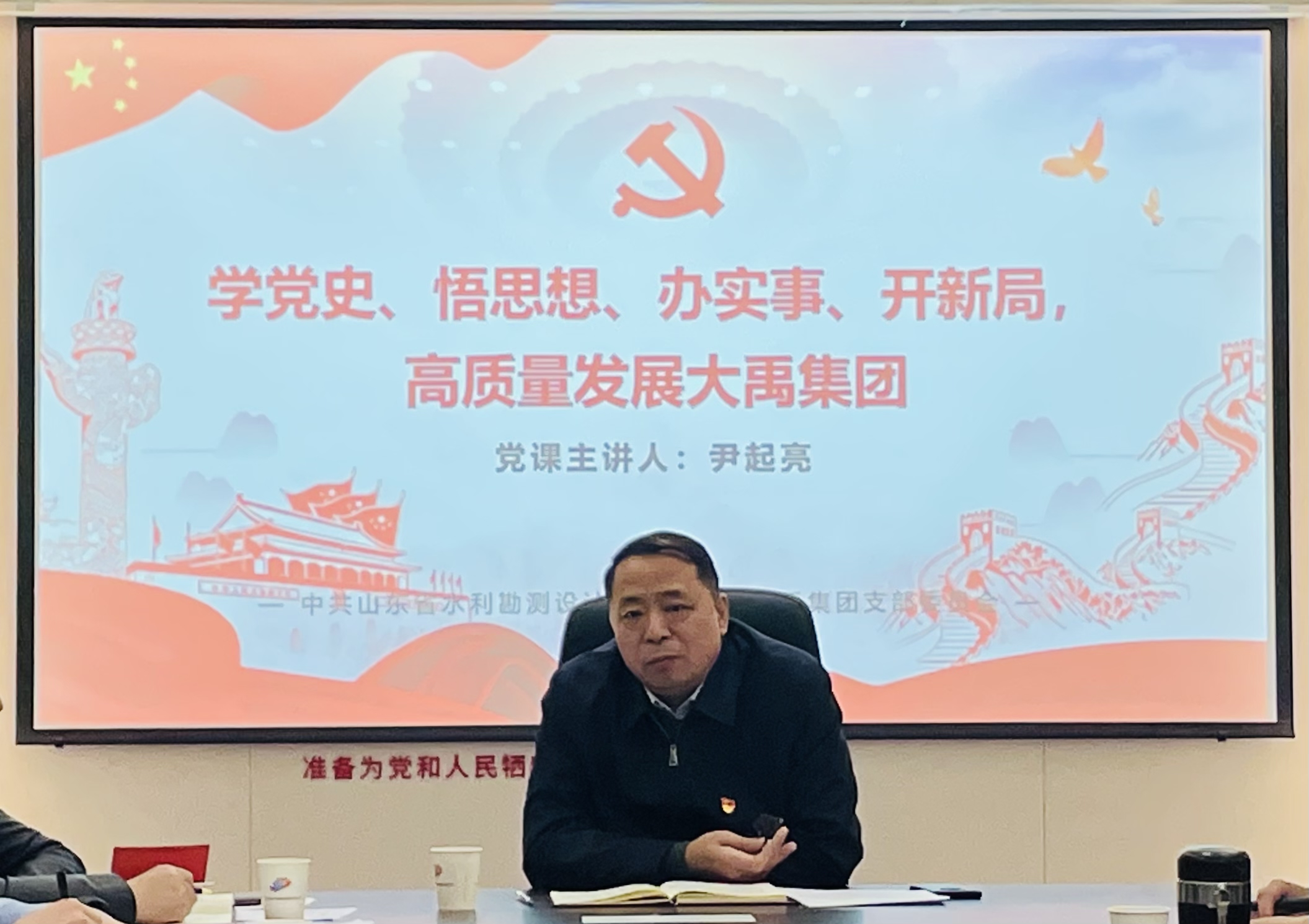為深入學習貫徹習近平新時代中國特色社會主義思想,鞏固“不忘初心 牢記使命”主題教育成果,加強基層黨的建設,助力支部組織生活更上一層樓,10月29日下午,山東水設黨委委員、副總經理尹起亮同志為大禹集團領導干部和全體黨員上了一堂生動的黨課——《學黨史、悟思想、辦實事、開新局,高質量發展大禹集團》。