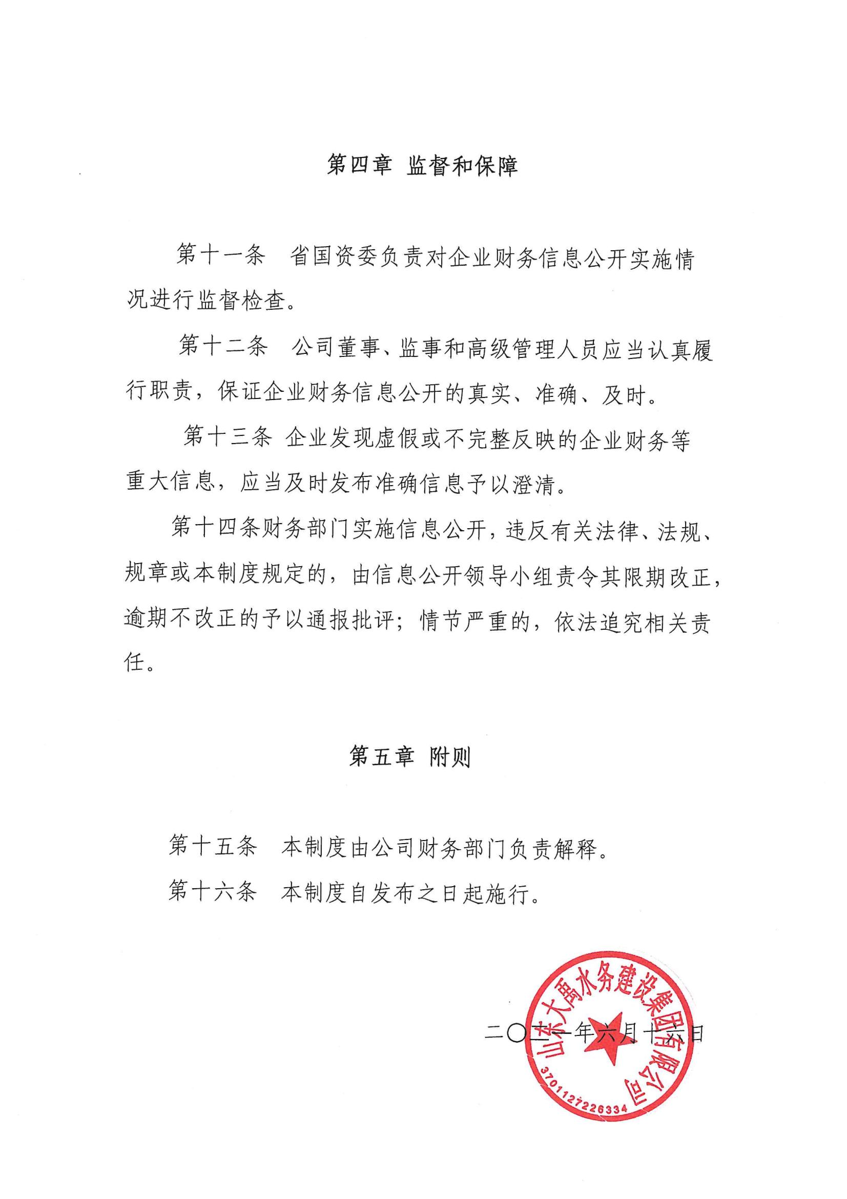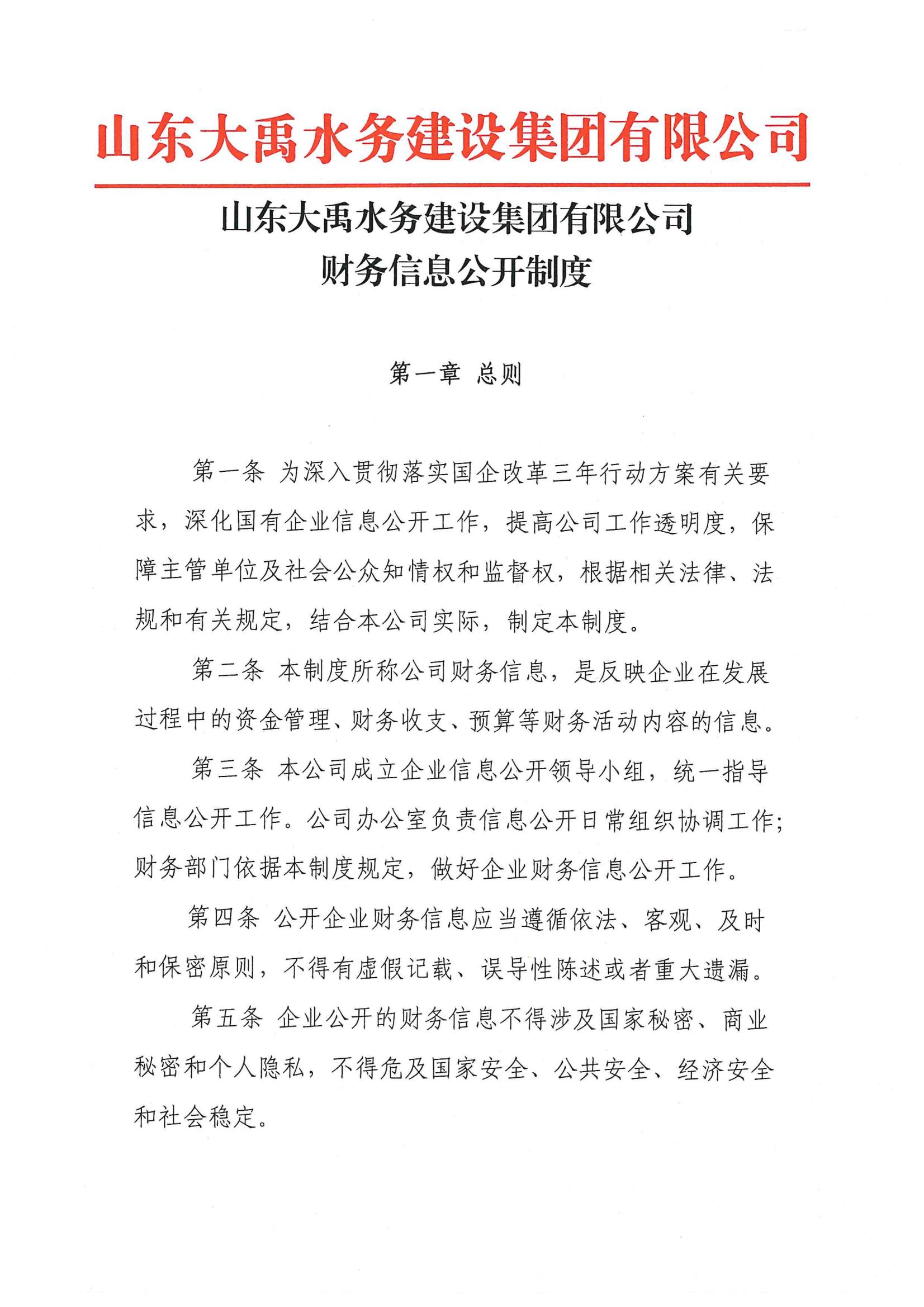 山東大禹水務建設集團有限公司財務信息公開制度