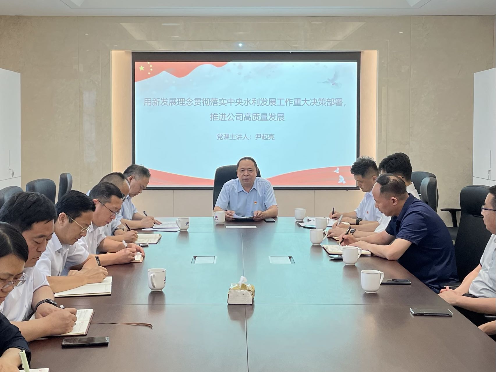 尹起亮深入剖析了新發展理念的科學內涵,他強調,要貫徹新發展理念,推進高質量發展,落實中央水利發展工作的重大決策部署。結合各權屬公司實際,他提出四點要求:一是提高思想認識,強化責任擔當,深入學習習近平新時代中國特色社會主義思想,以新發展理念引領經濟高質量發展。二是落實中央水利發展工作的重大決策部署,深化生產經營工作。三是積極參與其他行業涉水項目,加強戰略合作,加大跨行業發展力度。四是全面布局分支機構,提高服務質量。